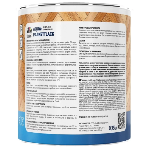 Лак паркетный Dufa Aqua-Parkettlack шелково-матовый прозрачный 0.75 л