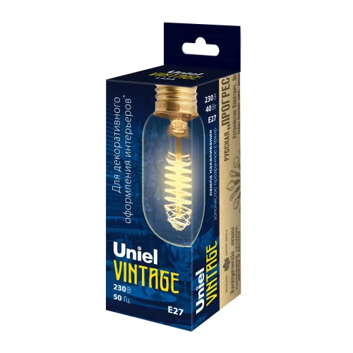 Лампа накаливания Uniel Vintage с классическим цоколем Е27 выполнена в форме цилиндра. Позволит создать винтажную атмосферу у себя дома. Потребляемая мощность — 40 Вт.