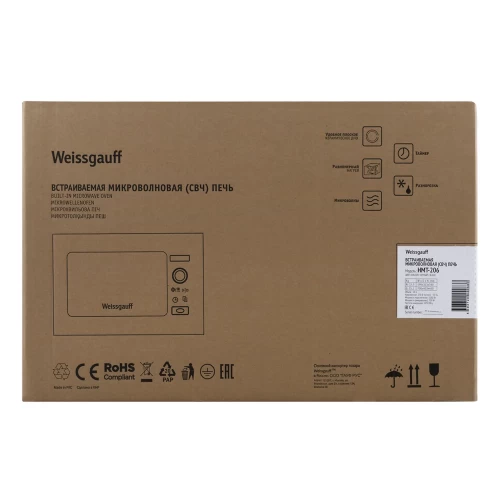 Микроволновая печь Weissgauff HMT-206 встраиваемая 20л 59.5x29.3x39 см сенсорное управление цвет белый