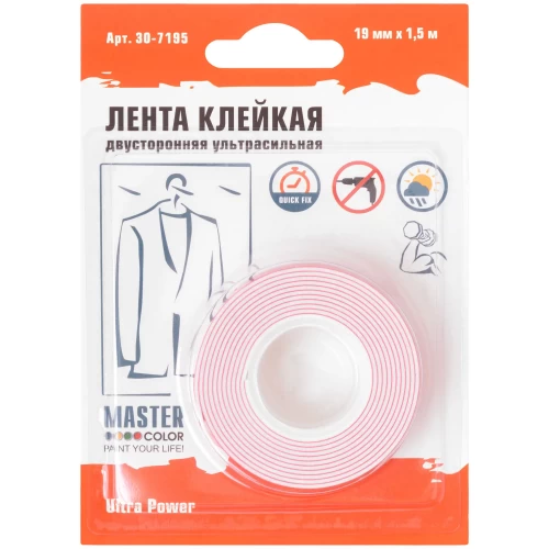 Лента клейкая двусторонняя для внутренних работ 19 мм x 1.5 м