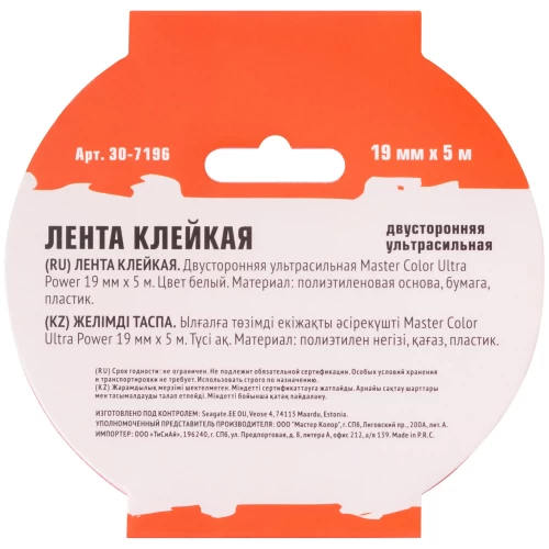 Лента клейкая двусторонняя для внутренних работ 19 мм x 5 м