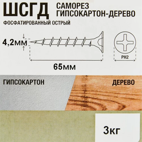 Саморезы по дереву Tech-Krep фосфатированные 4.2x65 мм 3 кг