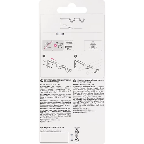 Держатель двухрядный простой металл цвет античная медь 2 см