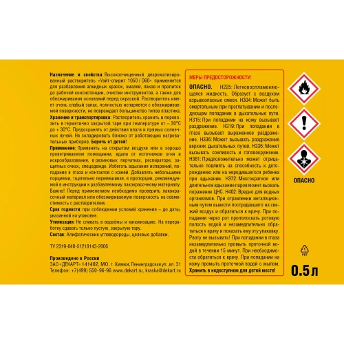 Растворитель Husky White Spirit 1050/D60 500 мл