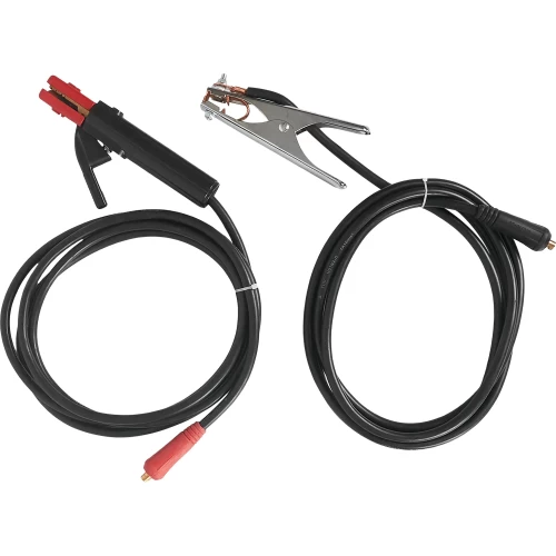 Комплект сварочных кабелей предназначен для ручной дуговой сварки металлическим электродом (ММА). Комплект подходит к большинству современных сварочных аппаратов. Максимальный сварочный ток - 300 А. Длина проводов - 1,5 м.