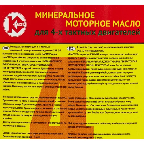 Масло для 4-х тактных двигателей Калибр мастер