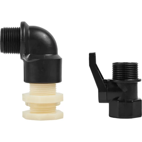 Набор предназначен для подключения системы полива к емкости. Штуцер изготовлен из прочного пластика, имеет наружную резьбу 3/4" и гайку для закрепления в стенке емкости. Кран пластиковый с наружной и внутренней резьбой 3/4 дюйма. Угол 3/4" позволяет соединить элементы набора под углом, что снижает боковую нагрузку на резьбы и предотвращает вероятность поломки. Детали набора выполнены из высокопрочного пластика, не подвержены влиянию ультрафиолета, имеют длительный срок эксплуатации.
