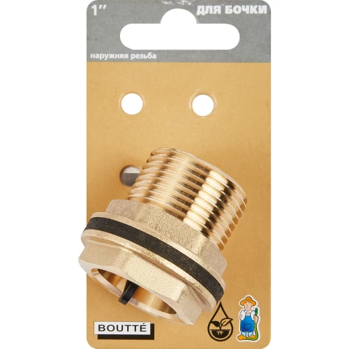 Штуцер используется для подключения системы полива к источнику воды - емкости, путем врезки. Штуцер изготовлен из латуни, отличающейся стойкостью к коррозийным процессам, прочностью и долговечностью, имеет наружную резьбу и гайку 1 дюйм.