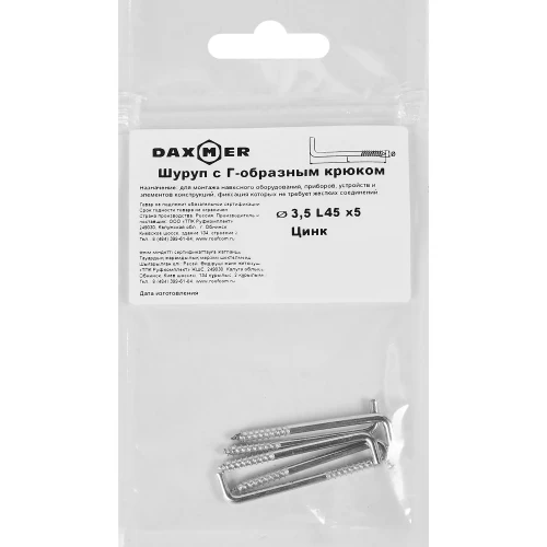 Крюк-шуруп Г-образный 3.5x45 мм, сталь оцинкованная 5 шт.