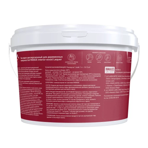 Лак для мебели акриловый Parade Interior Wood Laquer цвет прозрачный матовый 2.5 л
