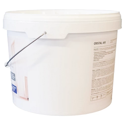 Обладает высокой антимикробной активностью по отношению к возбудителям различных инфекционных, вирусных и кишечных заболеваний. Использование Cristal Air помогает реже использовать вредные для здоровья хлорсодержащие дезинфицирующие средства. Краска отличается отличной укрывающей способностью, не даёт трещин, лёгкая в нанесении, обладает высокой адгезией, практически без запаха, влагостойкая. Допускается влажная уборка мягкой тканью или губкой без применения моющих средств. Материал пожаровзрывобезопасен.
