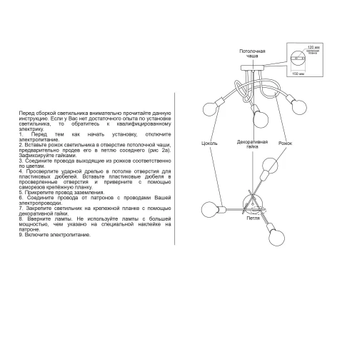 | Минимальный диаметр отверстия в потолке (в мм) |
