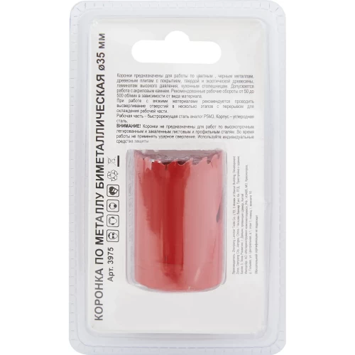 Биметаллическая коронка предназначена для работы по цветным и чёрным металлам, древесине, ламинату, ЛДСП и другим подобным материалам. Диаметр коронки - 35 мм.