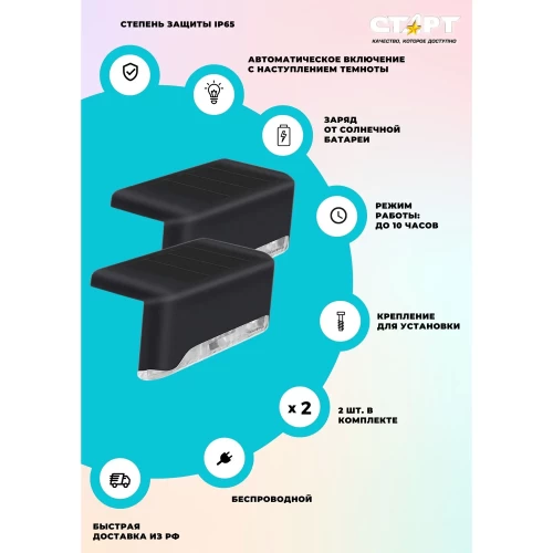 Подсветка для ступеней светодиодная уличная Старт Сад 1LED IP65 цвет черный 2 шт.
