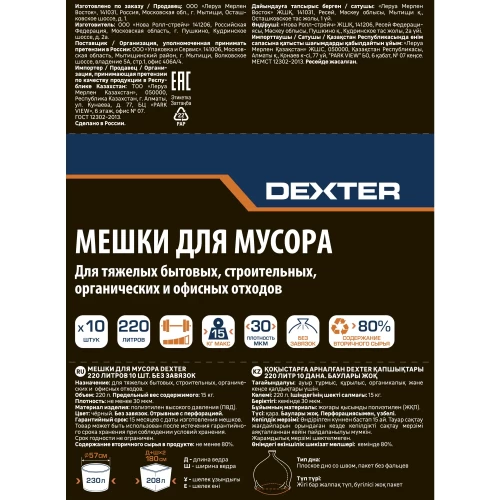Мешки для мусора Dexter 30 мкм 220 л цвет черный 30 мкм 10 шт