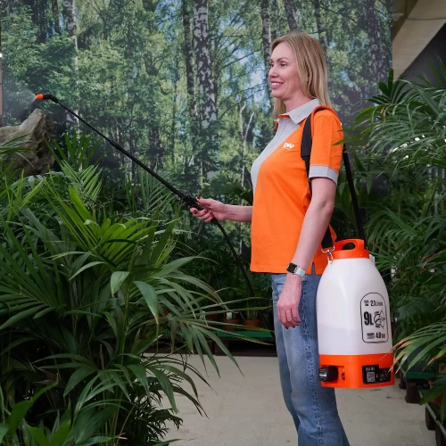 Телескопическая штанга до 90 см: Телескопическая штанга выполнена из пластика и регулируется по длине в диапазоне от 60 до 90 см. Это позволяет опрыскивать кустарники и деревья просто удлинив штангу.