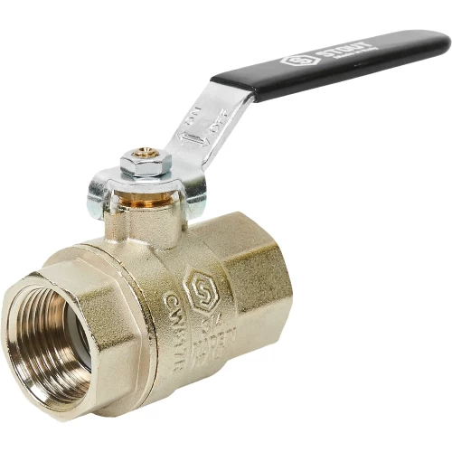 Плоский кран шаровой Stout — полнопроходной фитинг, состоящий из металлического корпуса со стальным шаром внутри. Оснащен рычажком для регулировки силы потока или его перекрытия.