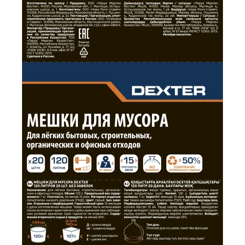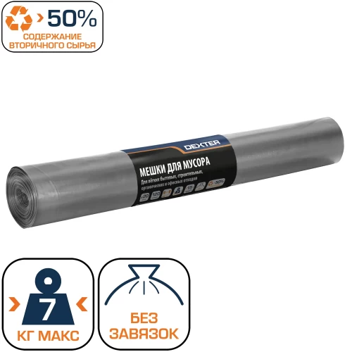 Мешки для мусора Dexter 15 мкм 120 л цвет серый 20 шт