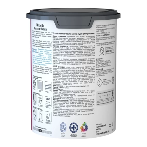 Краска моющаяся элегантная Tikkurila Harmony Velure База С бесцветная глубокоматовая 0.9 л