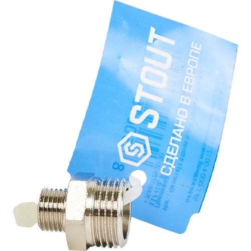 Ниппель Stout сделан из никелированной латуни. Материал устойчив к коррозии, воздействию высокой температуры. Применяется для обустройства водопроводной системы в жилом или административном здании. Обеспечивает герметичность соединения.