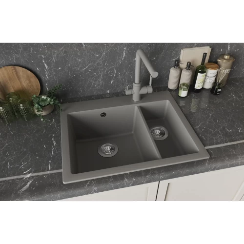 Мойка врезная Delinia прямоугольная 2 чаши 51x62x21.7 см кварц цвет серый шелк
