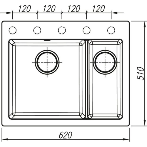 ВНИМАНИЕ: Мойка продаётся без отверстия под смеситель. Его необходимо сделать при установке. Диаметр надпила для смесителя с обратной стороны мойки - 35 мм. Не забудьте приобрести соответствующую коронку с алмазным напылением.