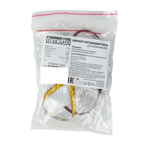 В состав комплекта входит светодиодноя лента для светильника GX53, 0.25 м и блок питания 5 Вт.