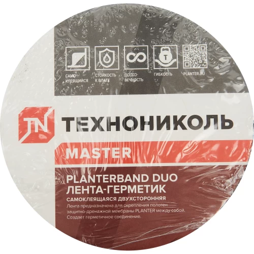 Лента-герметик самоклеящаяся Технониколь Planterband Duo предназначена для склеивания дренажных мембран с плоскими краями. Обеспечивает плотное, герметичное соединение. Оснащена защитной полимерной пленкой.