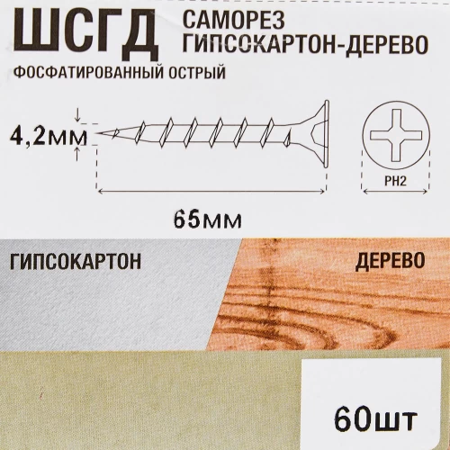 Саморезы по дереву фосфатированные 4.2x65 мм 60 шт.