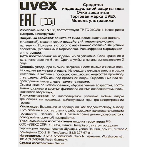 Очки защитные закрытые Uvex 9301714 прозрачные с защитой от запотевания