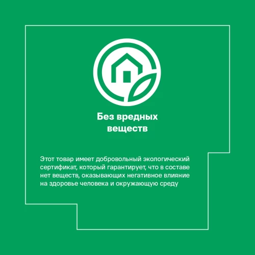 Безопасно для здоровья и природы. Этот товар имеет экологический сертификат, который гарантирует, что в составе нет веществ, оказывающих негативное влияние на здоровье человека и окружающую среду.