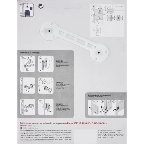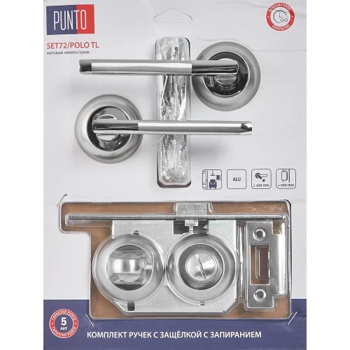 Дверные ручки Punto Polo, с запиранием, комплект, цвет никель/хром