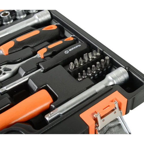 Набор инструмента ВИХРЬ предназначен для ремонта автомобилей, мотоциклов, садовой и другой техники. Подходит как для использования на станциях технического обслуживания, так и в бытовом применении дома или на даче. Инструмент изготовлен в соответствии с международными стандартами. Головки и комбинированные ключи изготовлены из хромованадиевой стали, придающей инструменту высокую твердость и легкость. Биты, биты-вставки и отвёртки производятся из стали S2, улучшающей характеристики крутящего момента и твёрдости. Все наборы упакованы в кейс, изготовленный из жесткого противоударного пластика, с металлическими застёжками.