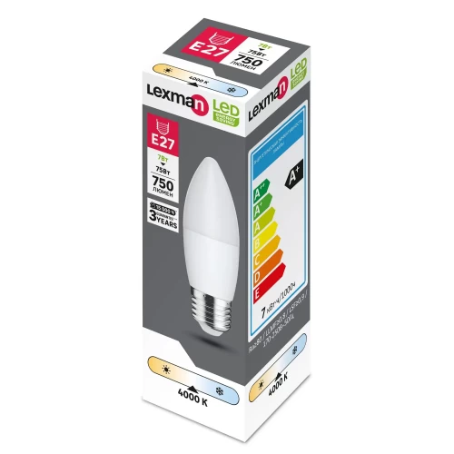 Лампочка светододная Lexman свечаа E27 750 лм нейтральный белый свет 7 Вт