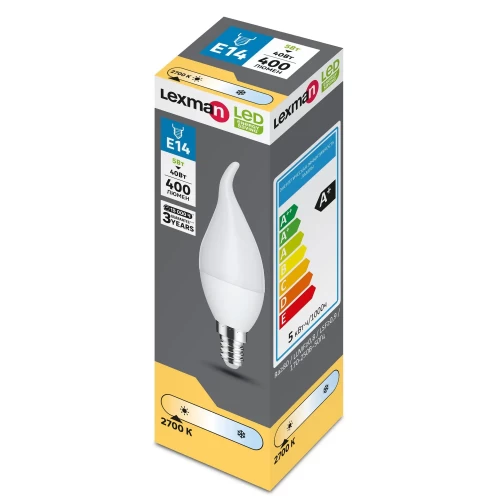 Лампочка светододная Lexman свеча E14 400 лм теплый белый свет 5 Вт