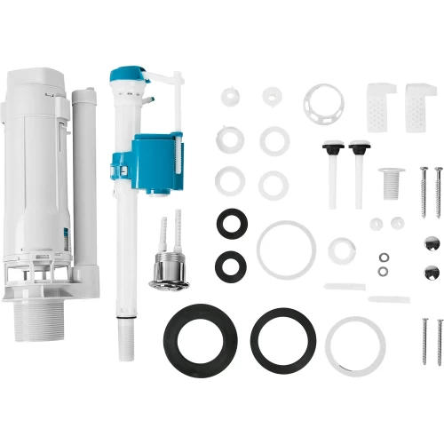 • Обладает системой экономии воды — слив представлен 2 кнопками. При нажатии на одну происходит смыв порцией воды, на вторую — содержимое бачка сливается полностью. Объемы слива — 3 и 6 л.