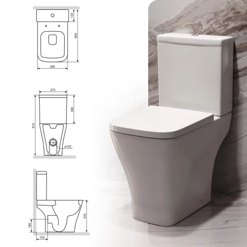 Габариты унитаза (ШxВxГ): 37.5 x 81.5 x 60.5 см.