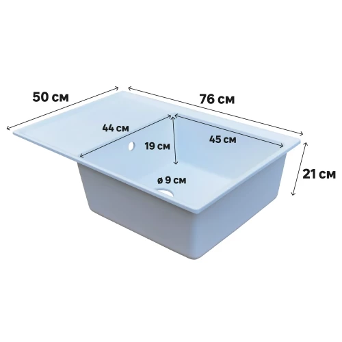 Мойка врезная Delinia прямоугольная 76x50x21 см кварц цвет белый