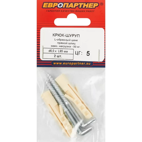 Крюк-шуруп L-образный 6x65 мм, нейлон 2 шт.