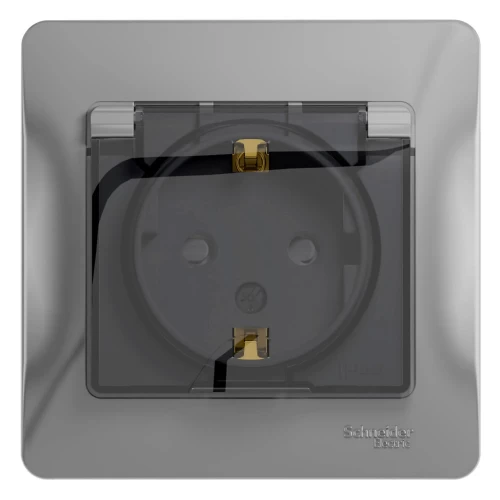 Розетка встраиваемая влагозащищенная Schneider Electric Glossa с заземлением с крышкой и шторками IP44 цвет алюминий