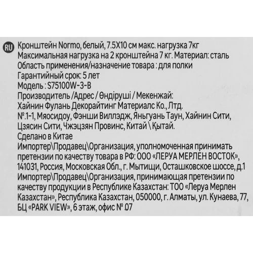 Кронштейн Normo 7.5х10 см нагрузка до 7 кг цвет белый