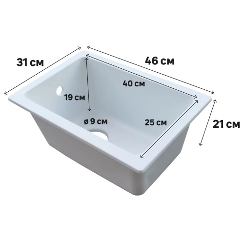 Мойка врезная Delinia прямоугольная 31x46x21 см кварц цвет белый