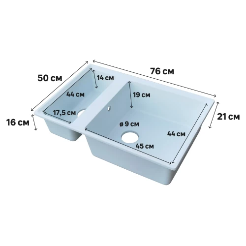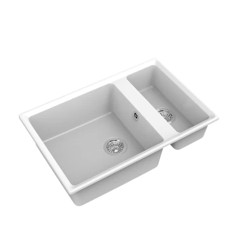 Мойка врезная Delinia прямоугольная на 2 чаши 76x50x21 см кварц цвет белый