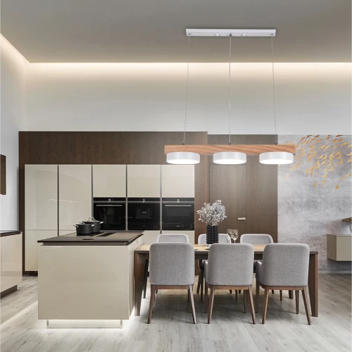 Люстра светодиодная Racemo 516075 бело-коричневого цвета может настраиваться как с помощью настенного выключателя, так и при помощи пульта управления. Он помогает менять цветовую температуру в диапазоне от 2700 до 6400 К, выбирая комфортный вариант. Допускается монтаж к низкому потолку с помощью планки. Люстра используется в помещениях площадью 18 м². Исключение составляют комнаты с высоким уровнем влажности и запыленности (по стандарту IP20).