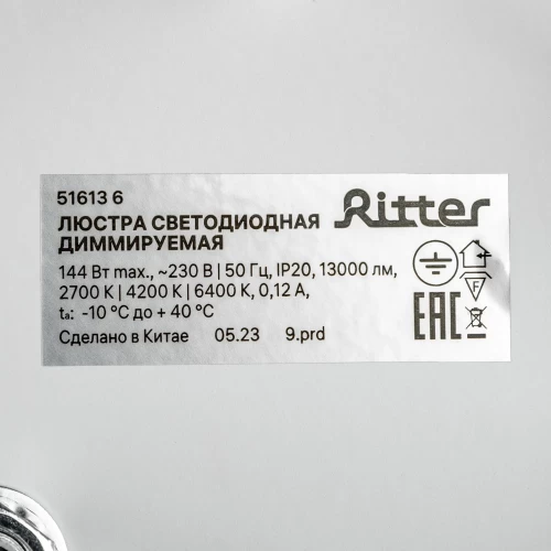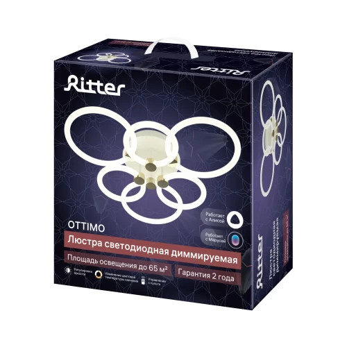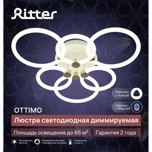 Люстра потолочная светидиодная диммируемая Ritter Ottimo 51613 6 с Алисой и пультом 144Вт 65м² 2700K-6400K цвет белый/золотой