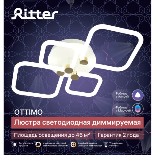 Люстра потолочная светодиодная диммируемая Ritter Ottimo 51616 7 с Алисой и пультом 102Вт 46м² 2700К-6400К цвет белый/золотой