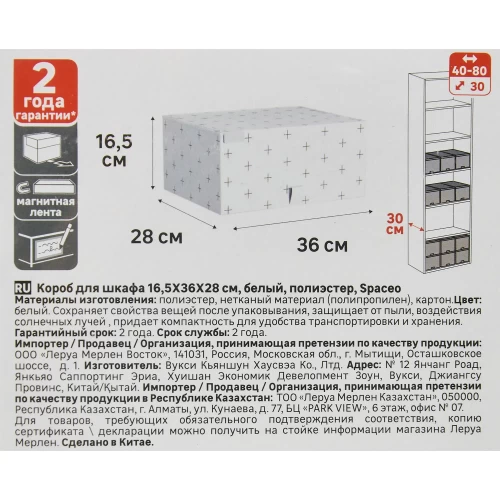 Короб для хранения 16.5x36x28 см полиэстер цвет белый