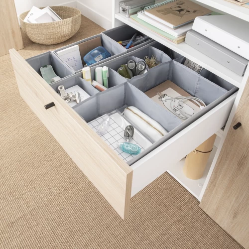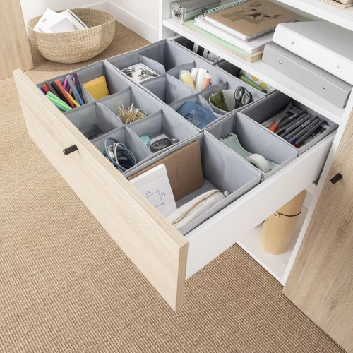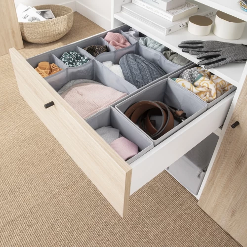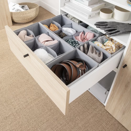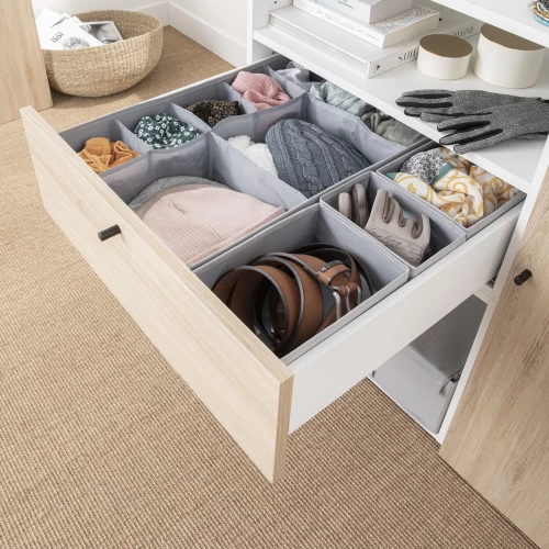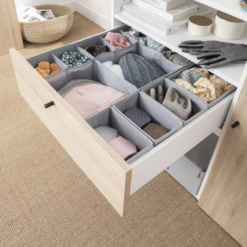 Органайзер подойдёт для того, чтобы удобно разместить бельё, аксессуары или косметику даже в невысоком ящике. Нейтральный серый цвет и простая минималистичная форма делают его по-настоящему универсальным.