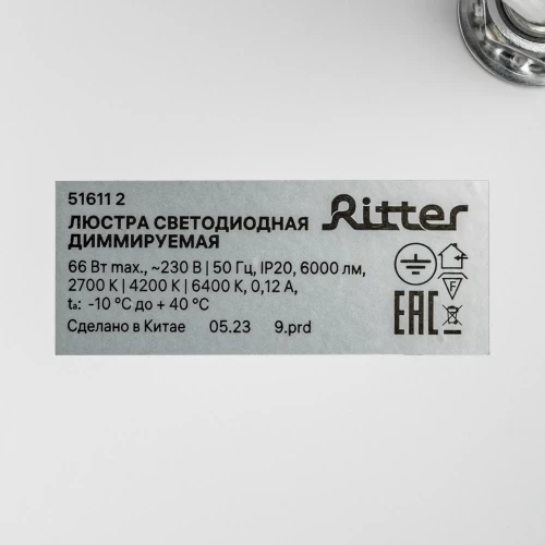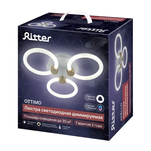 Люстра потолочная светодиодная диммируемая Ritter Ottimo 51611 2 с Алисой и пультом 66Вт 30м² 2700K-6400K цвет белый/золотой
