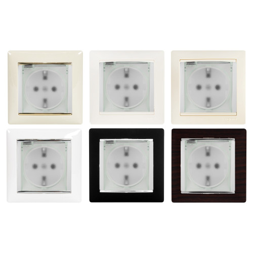 - Все токоведущие части розетки имеют защиту от случайного прикосновения.